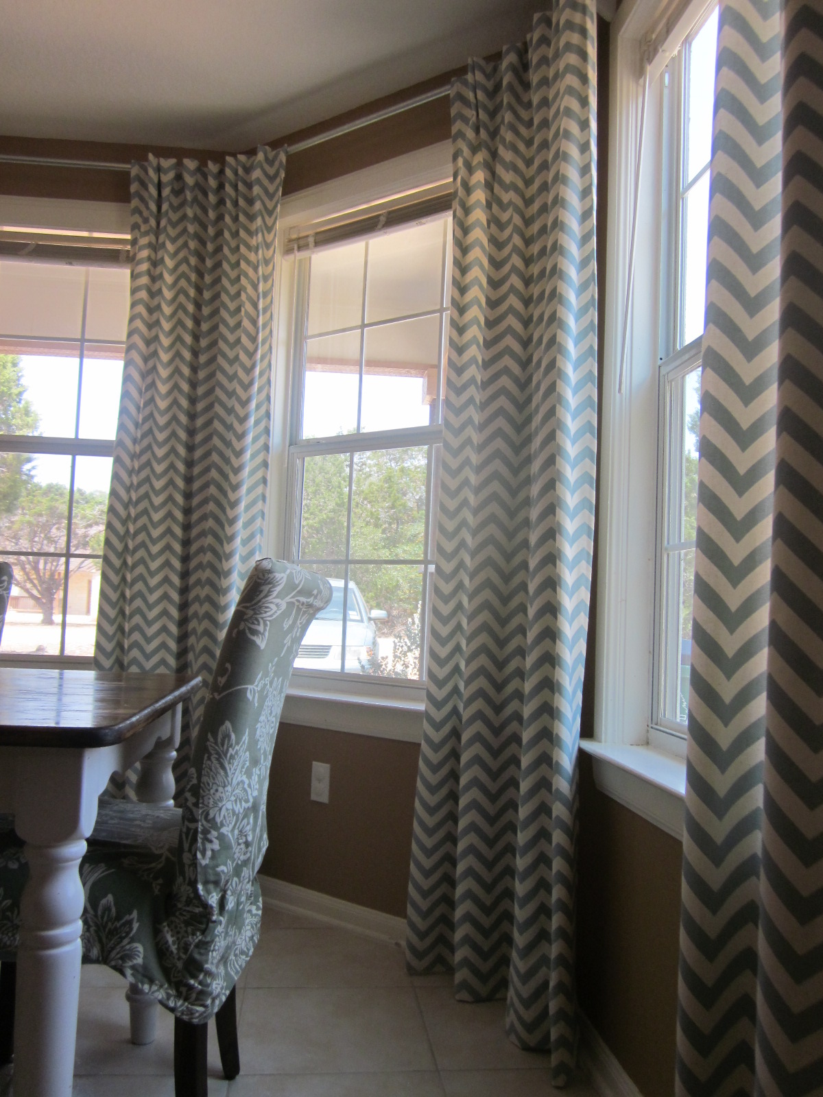 Dining room chevron curtains from Domestic Imperfection: